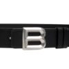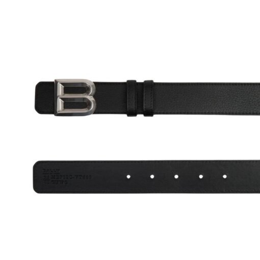 One of the standout features of the Bally B-Bold belt is its sleek, minimalist design. The focal point is the buckle, a bold metallic B-shaped emblem that exudes contemporary flair. The polished finish of the buckle adds a touch of shine, contrasting beautifully with the matte black of the leather. This signature buckle not only serves as a functional closure but also as a subtle yet distinctive brand identifier, reflecting Bally’s heritage and modern aesthetic.