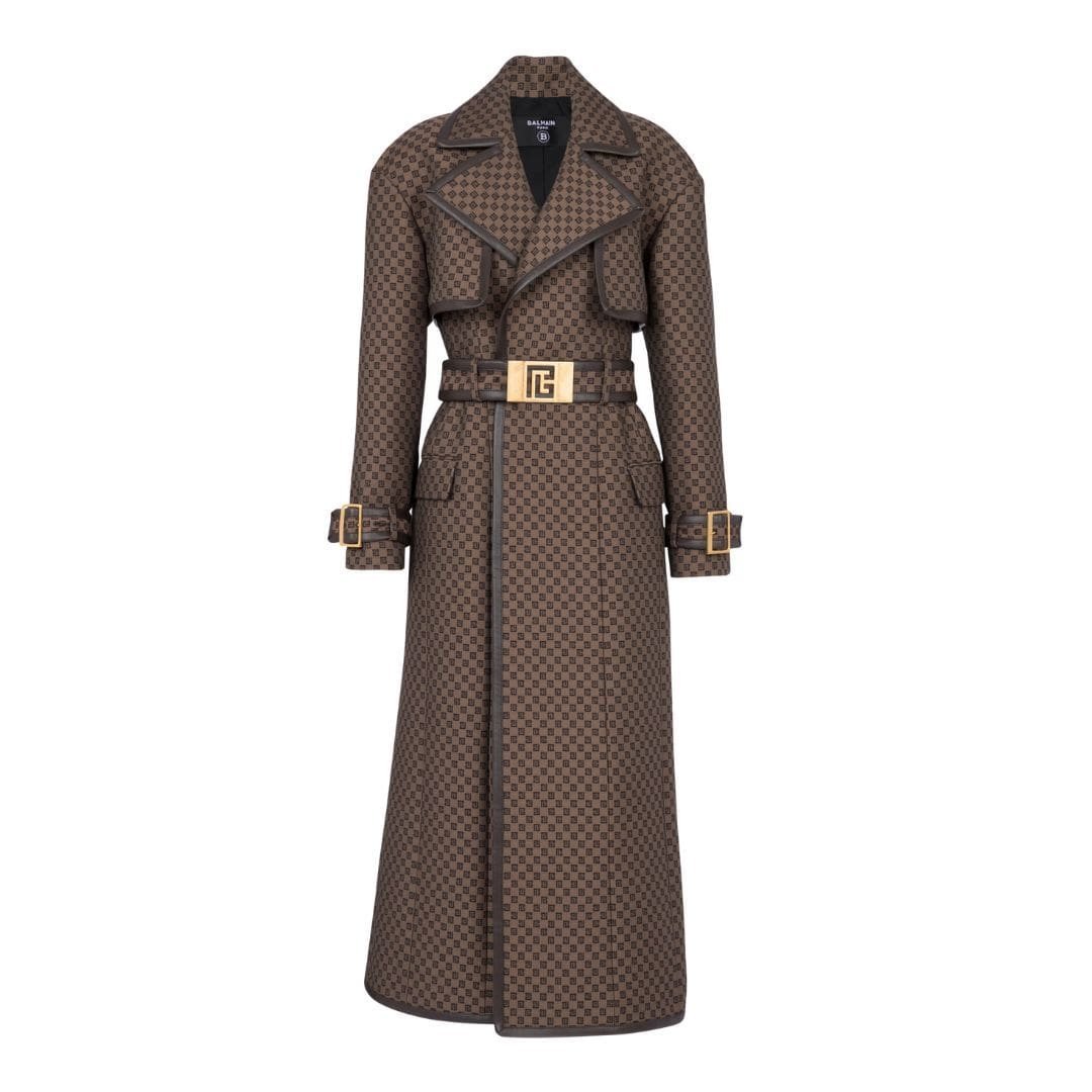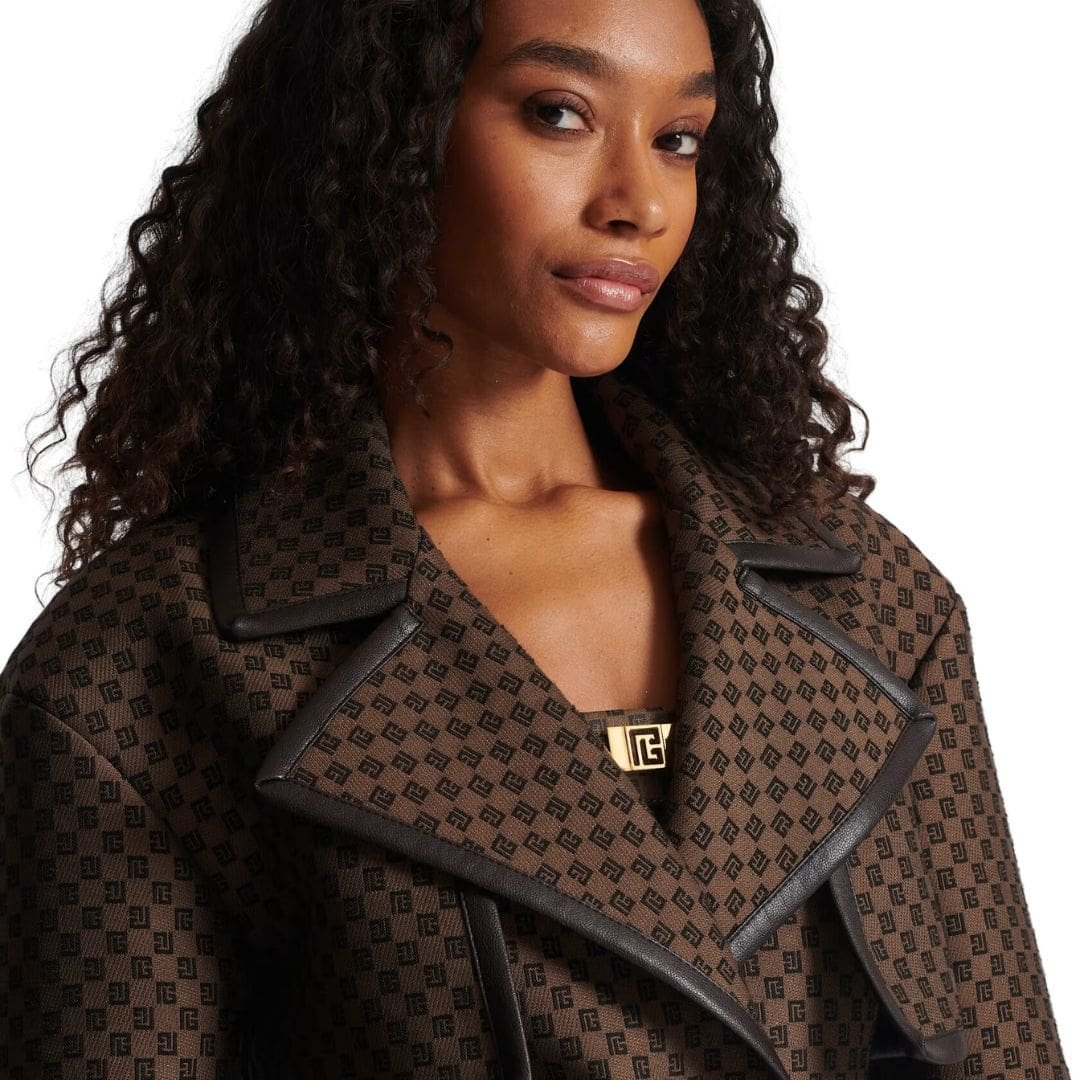 BALMAIN MINI MONOGRAM JACQUARD TRENCH COAT
