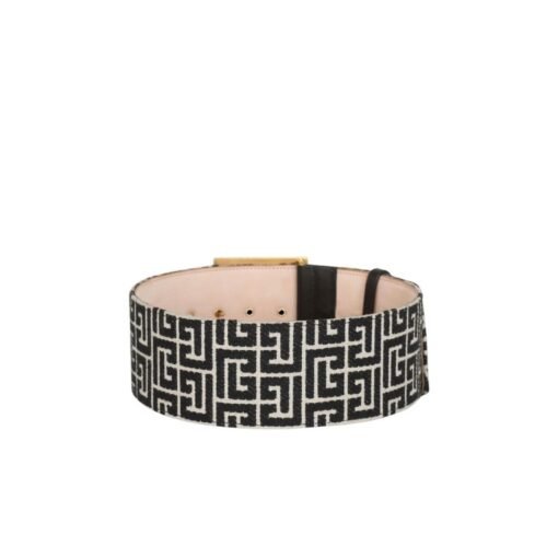At the heart of this accessory lies the striking monogrammed jacquard fabric, meticulously woven to perfection, displaying the iconic Balmain logo with effortless finesse. The interplay of intricate patterns and rich hues exudes a sense of opulence, commanding attention with its captivating allure. The monogram detailing serves as a symbol of prestige and refinement, elevating the belt to a coveted status symbol within the realm of high fashion.