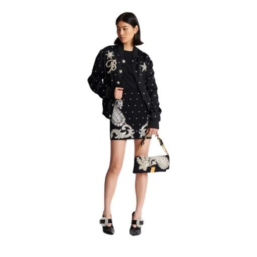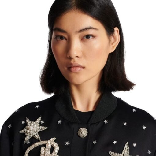 In essence, the Balmain Stars Embroidered Bomber Jacket is more than just a piece of clothing; it’s a work of art that reflects the brand’s commitment to excellence and its ability to push the boundaries of fashion. With its striking design, impeccable craftsmanship, and timeless appeal, it’s a must-have addition to any fashion-forward wardrobe.
