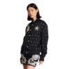 The attention to detail extends to every aspect of the design, from the sleek zippered front closure to the ribbed knit trims at the cuffs, collar, and hem. These thoughtful touches not only enhance the jacket’s aesthetic appeal but also ensure a snug and secure fit that flatters the wearer’s silhouette.