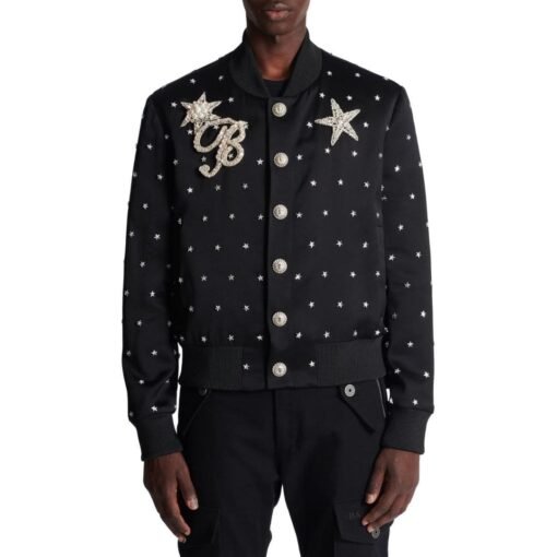 BALMAIN STARS EMBROIDERED BOMBER JACKET