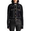 Constructed from high-quality crepe fabric, the jacket exudes a luxurious feel while maintaining a structured silhouette that flatters the body. The smooth, matte texture of the crepe fabric adds a touch of elegance to the rugged Western aesthetic, creating a striking juxtaposition that is quintessentially Balmain.