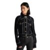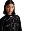 The standout feature of this jacket lies in its intricate embellishments and ornate detailing. Embroidered motifs reminiscent of traditional Western motifs adorn the shoulders and sleeves, while metallic studs and hardware accents add a rebellious edge to the design. These embellishments serve as a testament to the brand’s commitment to craftsmanship and artistry, elevating the jacket from a simple outerwear piece to a statement-making work of art.