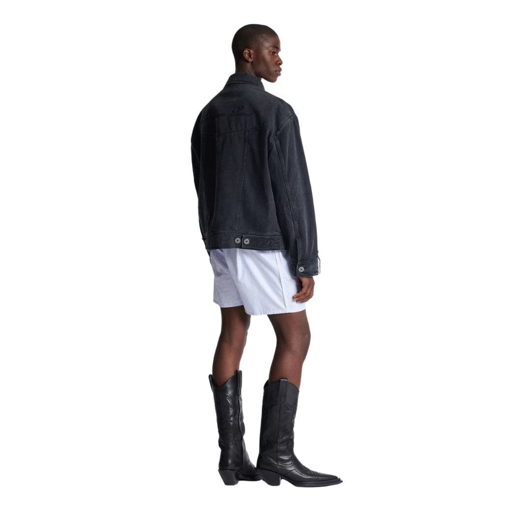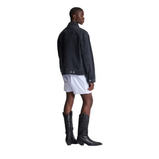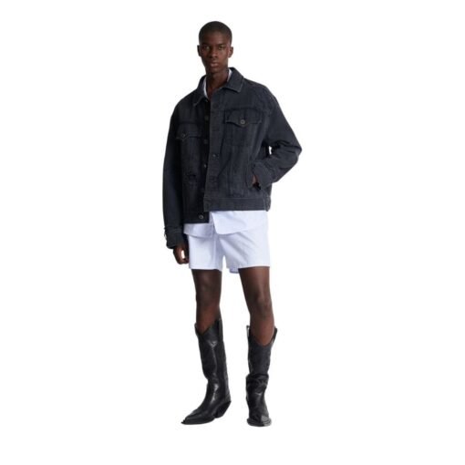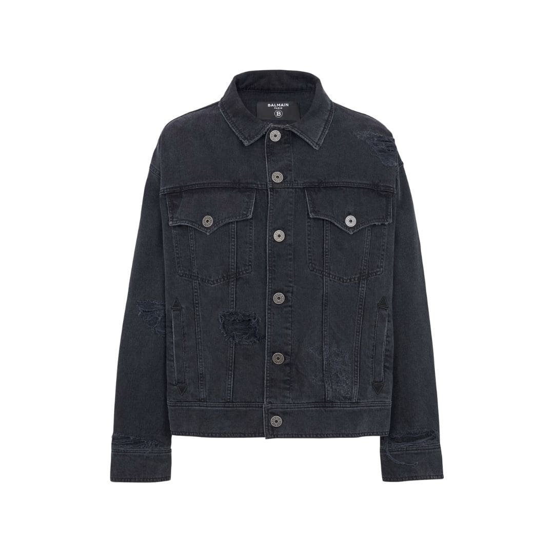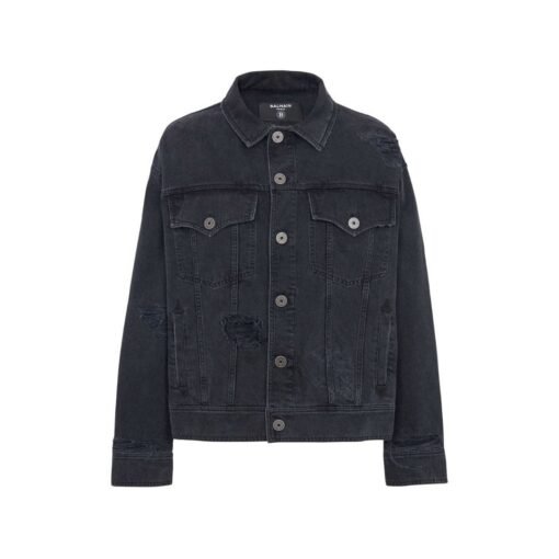 Balmain’s impeccable craftsmanship is evident in every stitch and seam of the jacket. Precision tailoring ensures a flattering fit that accentuates the masculine silhouette, while subtle distressing adds character and depth to the design. The use of premium denim fabric not only lends durability to the jacket but also provides a luxurious feel that is soft to the touch yet sturdy enough to withstand the rigors of everyday wear.