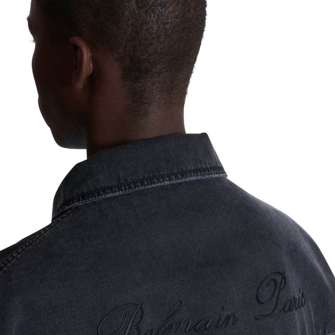 The attention to detail extends to the hardware and embellishments, with Balmain’s iconic embossed buttons and engraved rivets adding a touch of opulence to the rugged exterior. The signature Balmain logo patch adorns the chest, serving as a testament to the brand’s heritage and uncompromising commitment to quality.
