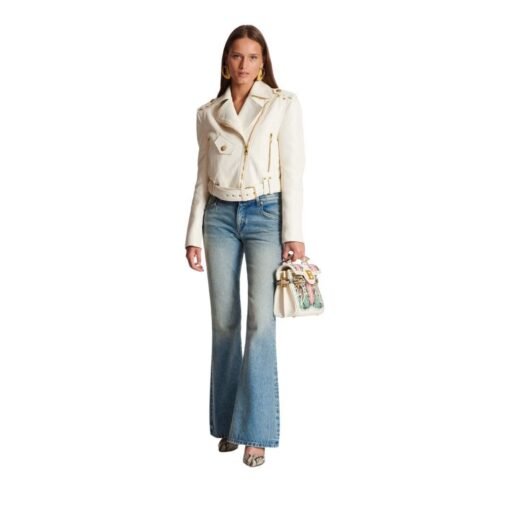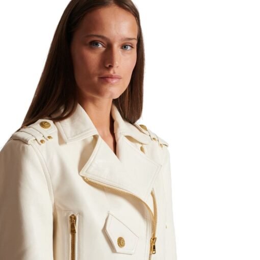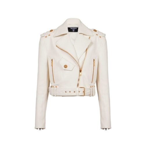 This jacket transcends trends, serving as a timeless investment piece that exudes confidence and sophistication. Whether worn as a rebellious statement or a sleek finishing touch, it promises to elevate any wardrobe with its unparalleled craftsmanship and unmistakable allure. The BALMAIN ZIPPED LEATHER BIKER JACKET is not just a garment—it’s a bold declaration of individuality and style.
