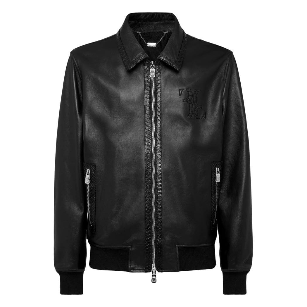 BILLIONAIRE LEATHER BOMBER WITH PYTONE INSERTS