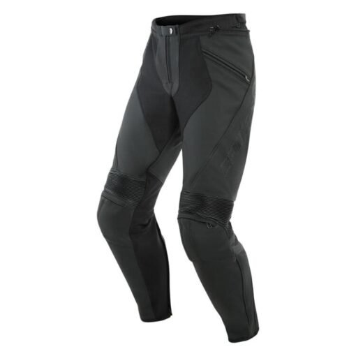 Additionally, the pants feature a jacket-to-pants connection zipper, enabling seamless integration with compatible Dainese jackets for a complete riding suit ensemble. This feature enhances safety by preventing the pants from riding up in the event of a slide, providing added protection and peace of mind for riders on the road or track.