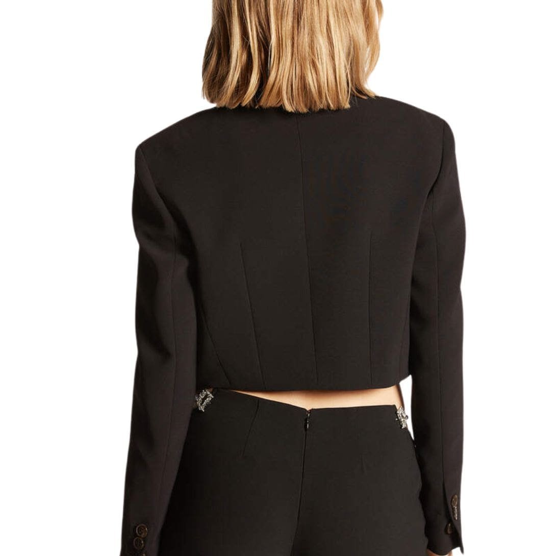 Whether paired with a chic pair of trousers for a more formal look or dressed down with designer jeans for a high-fashion casual ensemble, the DSQUARED2 D2 Jewel Spencer is a versatile piece that embodies the brand’s commitment to bold, luxurious fashion. It is not just a garment but a statement of style and individuality, perfect for those who want to stand out with confidence and elegance.