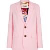 The jacket features a modern slim fit, designed to contour to the body without compromising on comfort. It is single-breasted with a two-button closure, lending a timeless appeal. Notable design elements include a notched lapel, which adds a touch of classic elegance, and structured shoulders that provide a sharp, defined look. The jacket is further accentuated by flap pockets and a welt chest pocket, adding both functionality and style. Inside, the jacket is lined with a luxurious satin fabric that not only feels smooth against the skin but also ensures the jacket drapes impeccably.