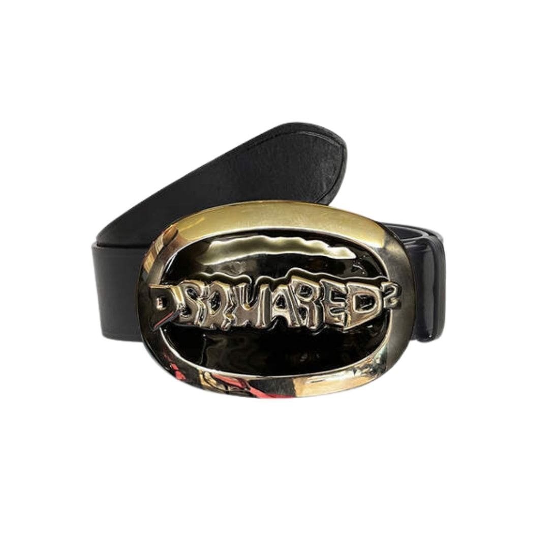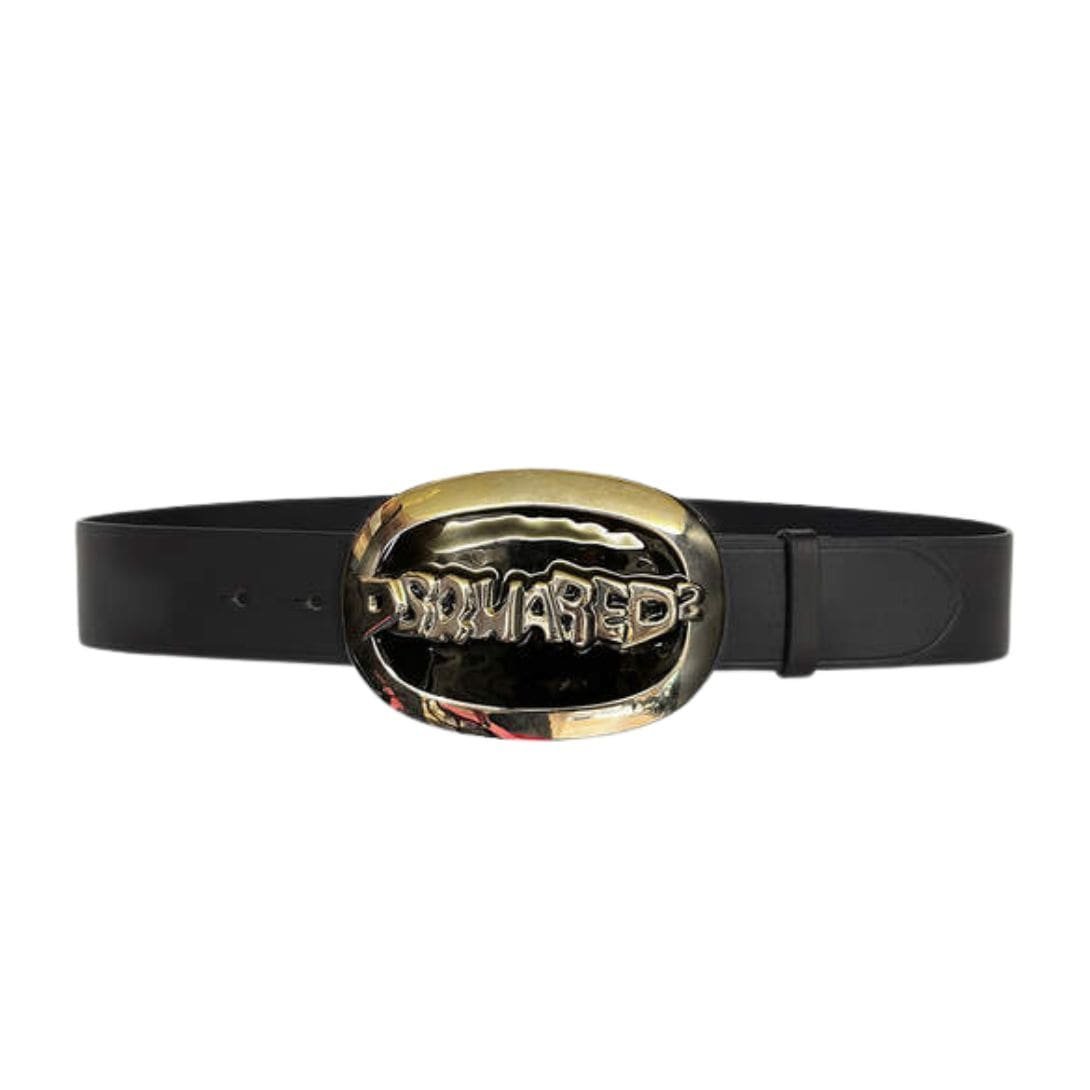 Crafted with precision and attention to detail, the belt features a prominent plaque buckle adorned with the iconic DSQUARED2 logo. The emblematic branding is a symbol of prestige and refinement, instantly recognizable to connoisseurs of high fashion. The plaque serves as a focal point, drawing the eye and accentuating the waist with its bold presence.