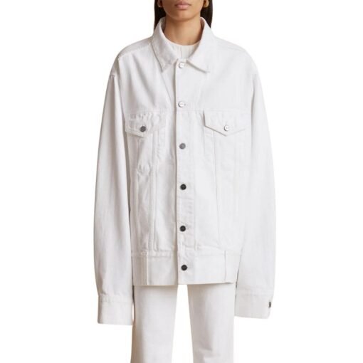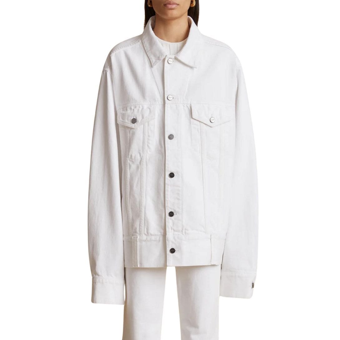 The Khaité Grizzo Jacket in white is a statement piece that seamlessly blends sophistication with urban edge. Crafted with meticulous attention to detail, it exudes a sense of luxury and modernity. The jacket is tailored to perfection, featuring a structured silhouette that accentuates the wearer’s frame while providing comfort and ease of movement.KHAITE THE GRIZZO JACKET IN WHITE