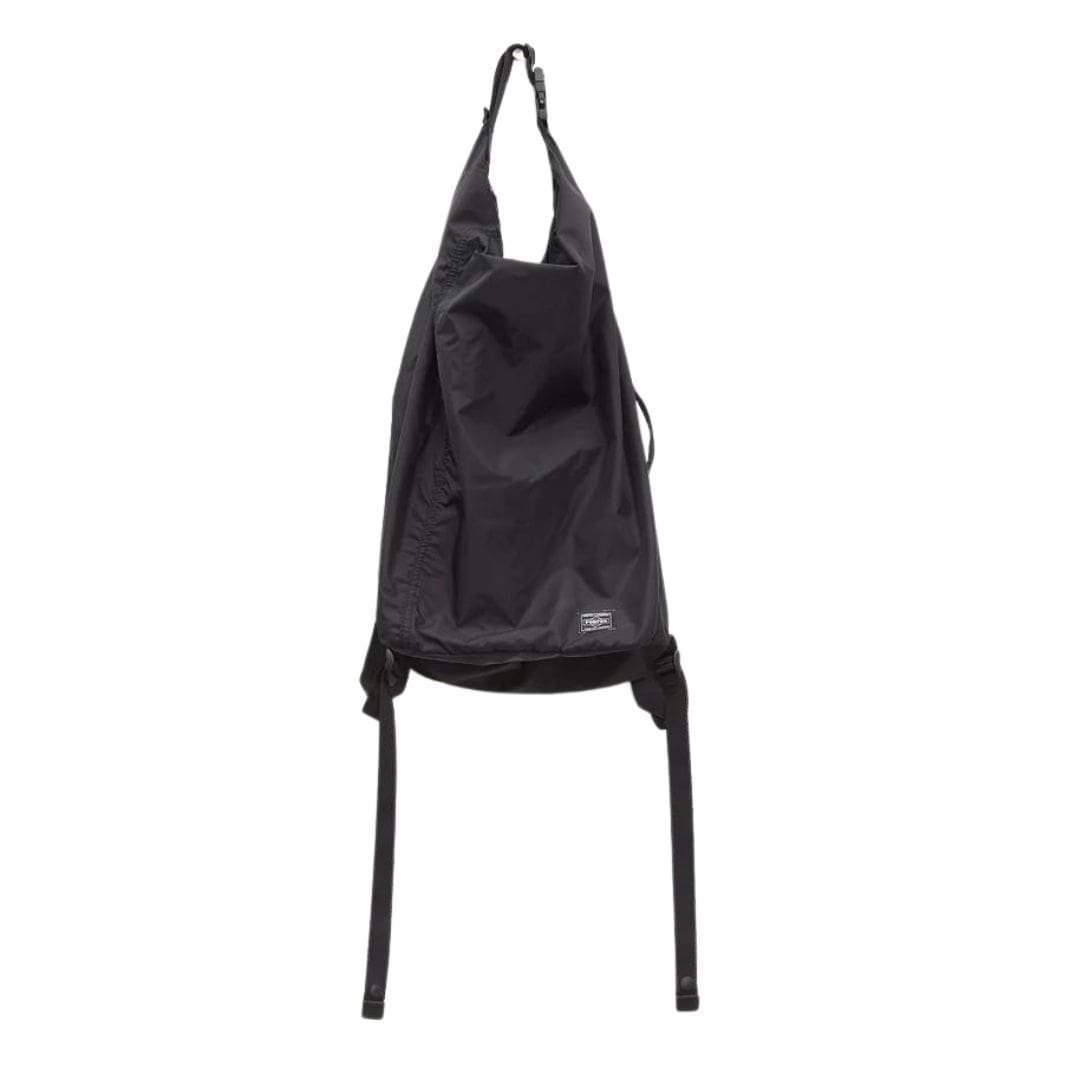 La Garconne Porter – Yoshida & Co Small Flex Bonsac packable two-way bag made of nylon ripstop, featuring a short top handle and backpack straps. Includes an adjustable top handle with buckle fastening, a tonal top zipper, and a single interior zip pocket. The bag can be packed into the interior zip pocket for compact storage.