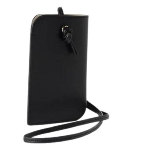 Introducing the La Garconne Totême Pocket Leather Pouch in black, featuring a knotted necklace strap crafted from classic smooth leather.