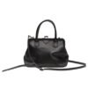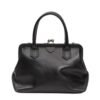 Introducing the La Garconne Y’s Clasp Closure Bag black structured bag, featuring top handles crafted from semi-glossed leather.