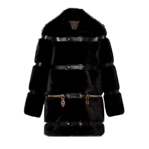 LOUIS VUITTON LEATHER STRIP BLACK MINK COAT