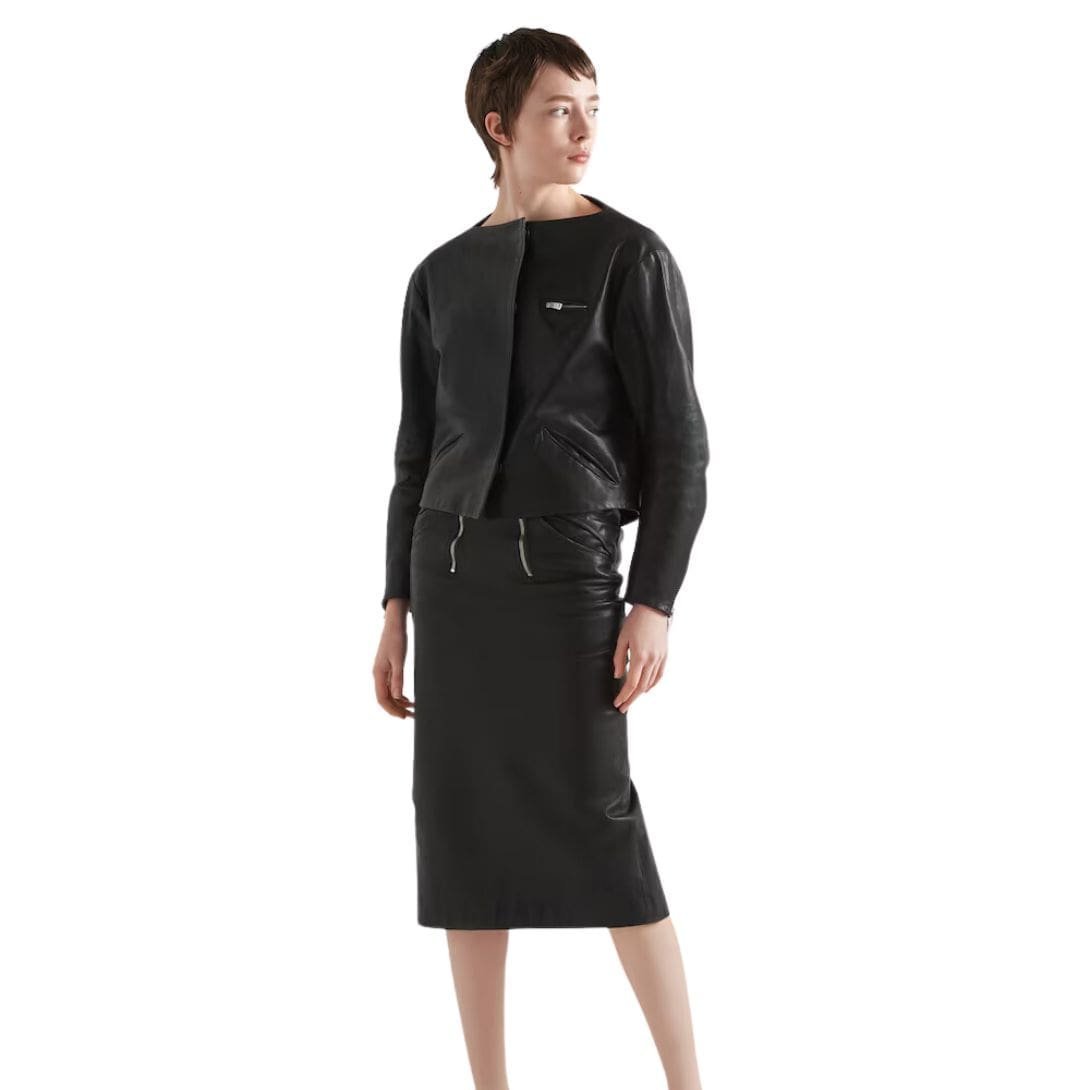 The Prada leather shirt epitomizes luxury and sophistication, merging the timeless appeal of leather with the contemporary edge of high fashion. Crafted from the finest quality leather, every detail of this garment reflects Prada’s commitment to impeccable craftsmanship and innovative design.