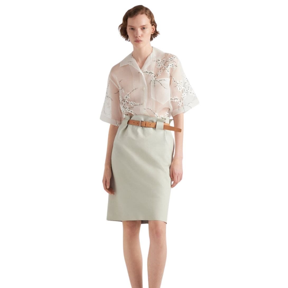 Embodying the brand’s signature aesthetic, the Prada Leather Skirt marries classic sophistication with a modern edge, striking the perfect balance between timeless elegance and contemporary style. Whether worn as a standalone statement piece or incorporated into a layered ensemble, this skirt exudes confidence and refinement, making it a coveted addition to any discerning fashion enthusiast’s wardrobe.