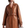 The Prada Nappa Leather Coat epitomizes luxury and sophistication, marrying timeless design with exquisite craftsmanship. Crafted from the finest Nappa leather, renowned for its buttery soft texture and exceptional durability, this coat exudes an air of refinement and opulence.
