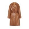 At first glance, the coat’s silhouette is sleek and minimalist, boasting clean lines and a tailored fit that flatters the wearer’s form. The supple leather drapes effortlessly, accentuating the body’s contours while offering superior comfort and ease of movement. Whether worn open or closed, the coat exudes an understated elegance that transcends trends, making it a versatile wardrobe staple for the discerning individual.