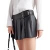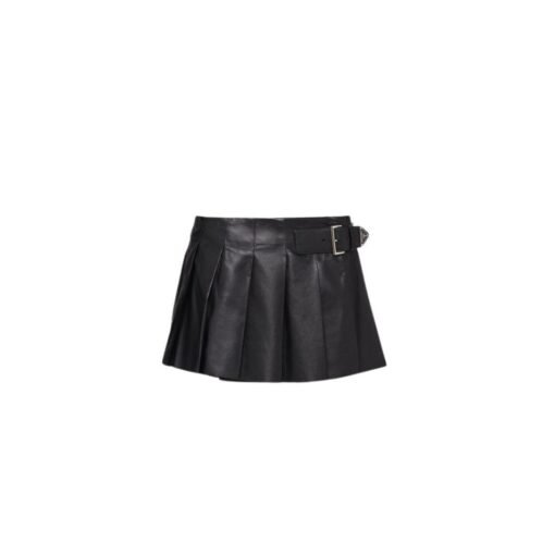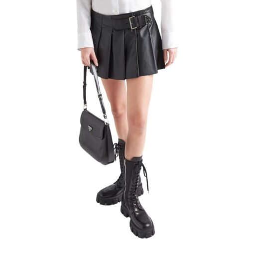 One of the key features of the PRADA Pleated Leather Skirt is its meticulous pleating. The precise, sharp pleats create a dynamic and flattering silhouette that moves gracefully with the wearer. These pleats add volume and a touch of playfulness to the skirt’s otherwise sleek and minimalist design, ensuring it stands out without overwhelming the rest of your outfit.