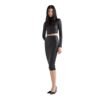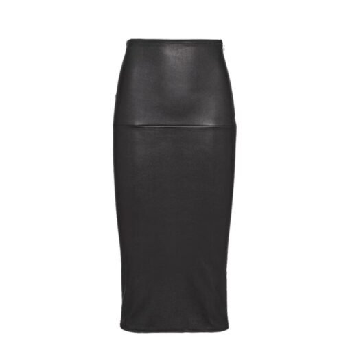 The skirt’s design marries classic femininity with a modern edge, featuring a sleek silhouette that hugs the hips and falls to a flattering length, typically hitting just above or at the knee. Its smooth, seamless construction creates a streamlined look, enhancing the wearer’s silhouette without sacrificing comfort.