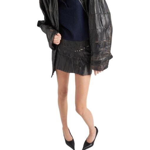 The Prada Studded Nappa Leather Patchwork Skirt epitomizes a harmonious fusion of contemporary edge and timeless sophistication. Crafted with meticulous attention to detail, this exquisite piece showcases Prada’s signature aesthetic of refined luxury and avant-garde design.