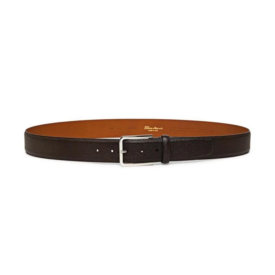 In summary, the Santoni Adjustable Brown Saffiano Leather Belt is more than just an accessory; it’s a statement of refined taste and discerning elegance. Whether worn for business or leisure, its understated sophistication and impeccable craftsmanship are sure to leave a lasting impression.