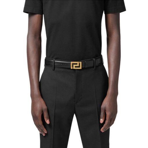 At the heart of this accessory lies the iconic Greca motif, a symbol synonymous with Versace’s rich heritage and timeless allure. Intricately embossed onto sumptuous leather, this emblematic pattern traverses the entire length of the belt, imparting a sense of grandeur and prestige.