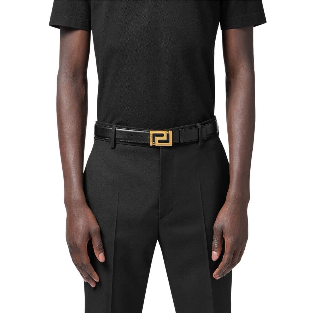 The Versace Greca Leather Belt, boasting a sleek width of 3 centimeters, is a captivating emblem of opulence and sophistication. Crafted with meticulous attention to detail, it epitomizes the brand’s legacy of luxury and Italian craftsmanship.VERSACE GRECA LEATHER BELT 3 CM