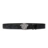 The centerpiece of the belt is the striking Medusa head buckle, a symbol of power and allure that has become synonymous with the Versace brand. Cast in gleaming gold-tone metal, the intricately detailed buckle demands attention and adds a touch of opulence to any outfit.