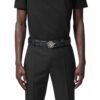 Versatile yet undeniably luxurious, this belt is a testament to Versace’s commitment to excellence and innovation. Whether paired with tailored suiting for a formal occasion or worn with casual attire for a touch of refinement, the Versace La Medusa Reversible Leather Belt is sure to make a statement.