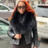WOMEN LEATHER- BLACK BIKER RIBBLES WITH BLACK FOX FUR