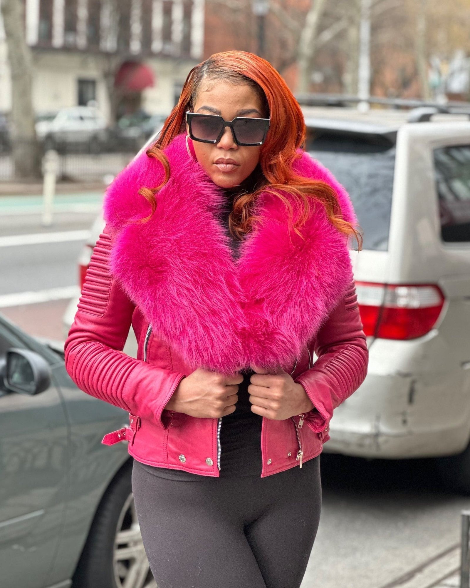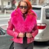 WOMEN LEATHER- PINK RIBBLES WITH PINK FOX COLLAR
